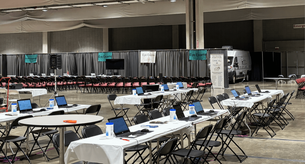 Large clinics are intense. They require weeks of coordination, cross-functional planning, careful staffing, and an ability to adapt quickly in environments that are often crowded, loud, and constantly shifting. They also offer something unique: a chance to meet hundreds of community members at once, without the barriers of transportation, complex scheduling, or traditional clinical structures. In a single day or weekend, we provide screenings, refractions, education, and referral pathways that can dramatically alter someone’s health trajectory. At Mission of Mercy 2025, we served 788 patients; nearly 100 more than last year, thanks workflow improvements implemented by my team, UPMC Community Ophthalmology & Remore Access Program (CORAP).