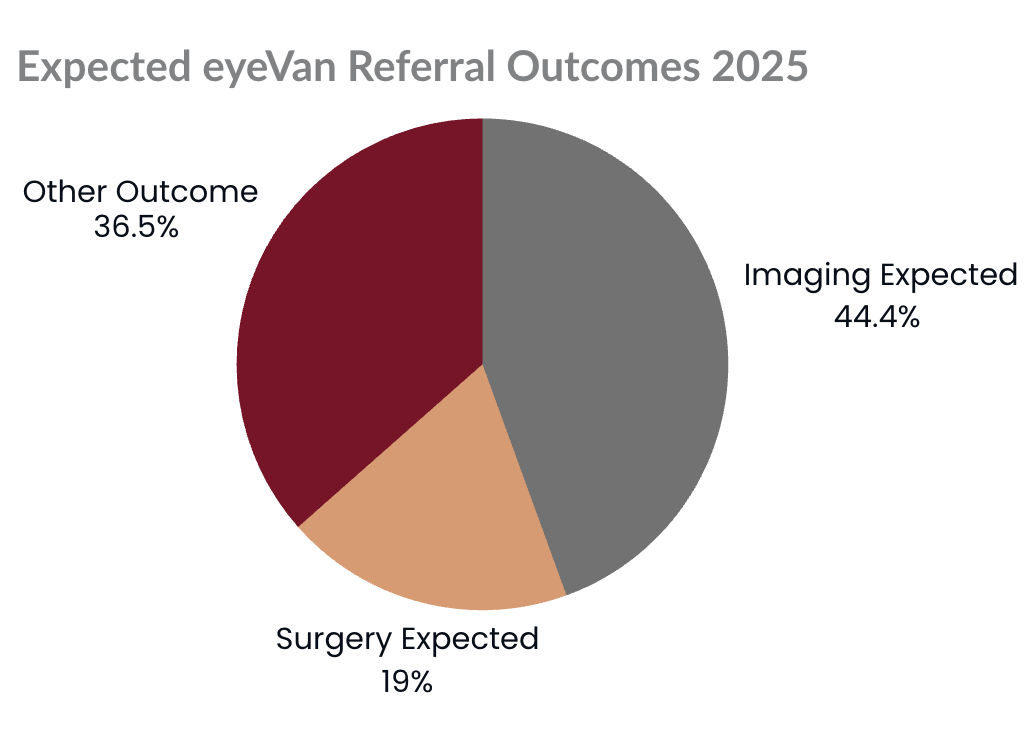 The depth of unmet need across our region is revealed at our large-scale events, reinforcing why mobile and community-based care models matter and exemplifying how much can be achieved when convenient, continued care is made available to our communities. Referrals from eyeVan clinics and Mission of Mercy events have expected imaging and surgical outcomes to prevent degerative eye diseases and manage the progression of developed cases with a referral pipeline to eye specialist regardless of the patients insurance status.