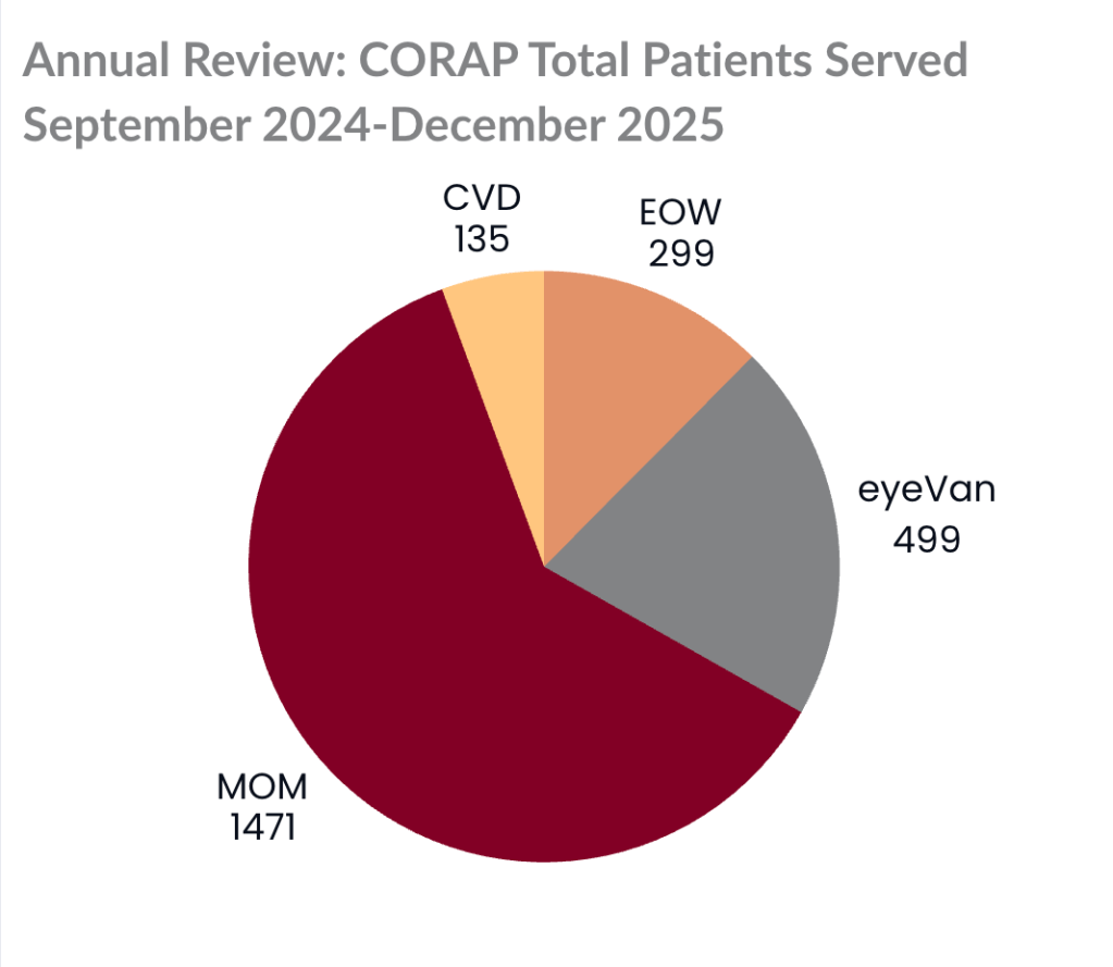 Our events reaffirm why scalable, flexible care models are essential for communities facing persistent access gaps. Last October, CORAP partnered with UPMC Optometry to update prescriptions and order glasses for over 100 students at Washington High School, where 60% of the student body failed their vision screenings the previous year. We’ll be back in October 2026! Further, show up rates for patients referred to Community Vision Day from our mobile clinic programming and MOM25 events were higher than the system average.