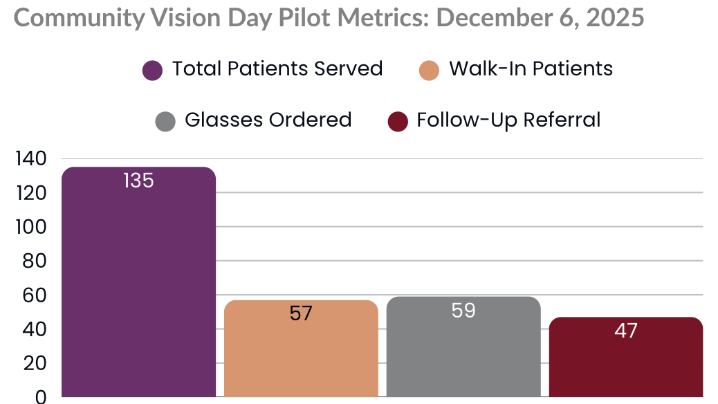 By hosting the event within the Vision Institute, providers had immediate access to diagnostic tools, clinical supplies, and referral systems—allowing for higher-quality evaluation and care than would be possible in a temporary pop-up setting.